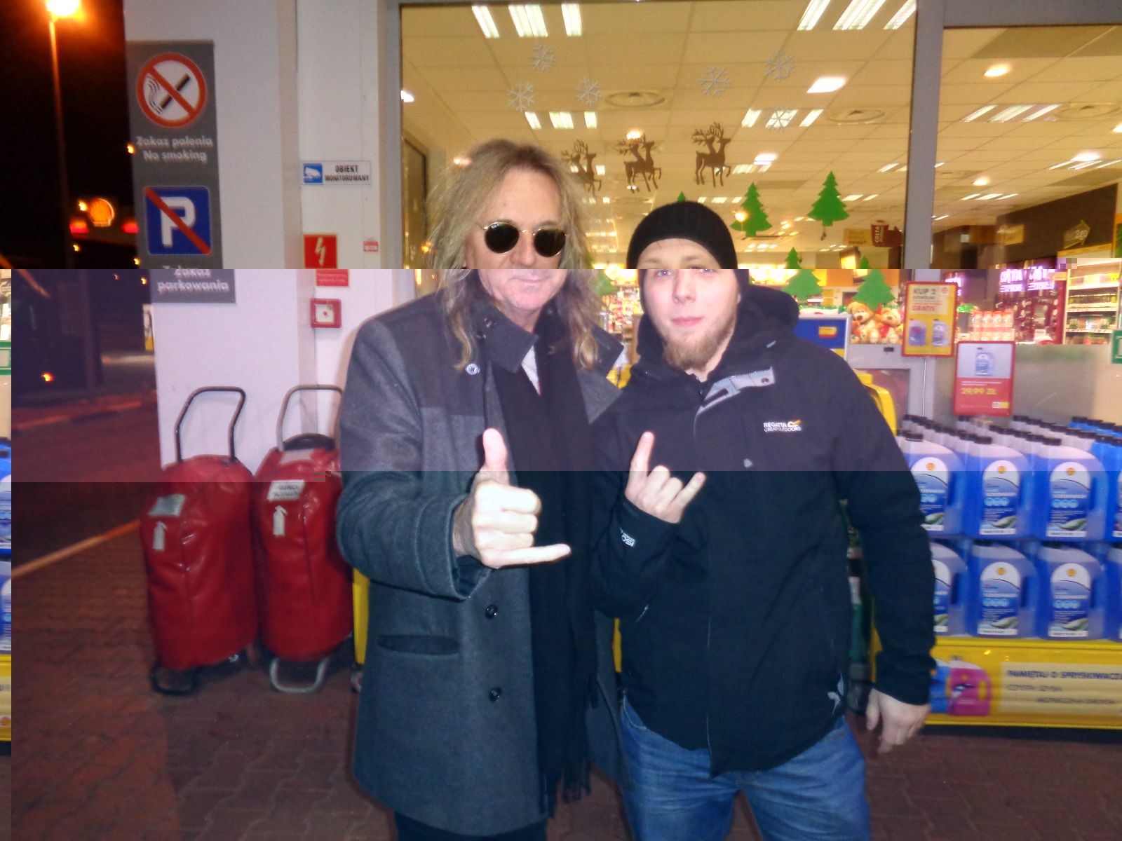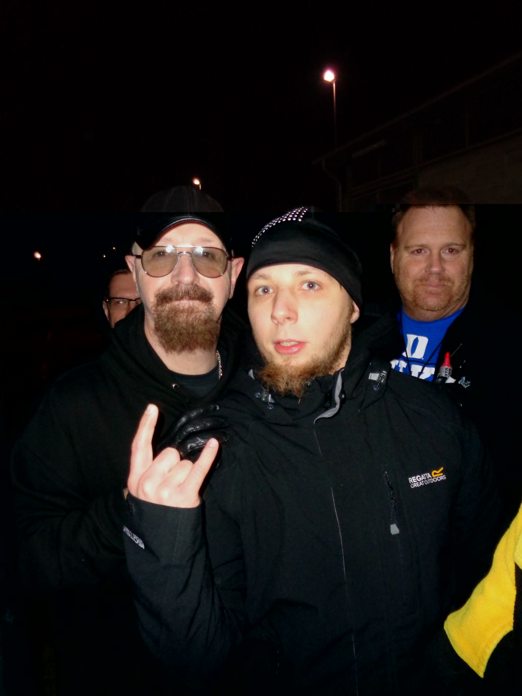 Drugi wspaniały koncert w 2015 i drugie spotkanie z bogami oko w oko!! Naprawdę nie mam słów żeby wyrazić postawę zespołu, który mimo dość mocnej piździawy wychodzi do fanów tak samo jak w czerwcu i z anielską cierpliwością podpisują wszystkim chętnym i pozują do zdjęć ( Rob chyba tylko od razu wsiadł do busa po wyjściu z hali, ale jak już wszyscy wyszli to i on się zlitował ). Autografy uzupełnione, foty po raz kolejny są!! Tylko tym razem wziąłem przed obiektyw już tylko trzech najważniejszych