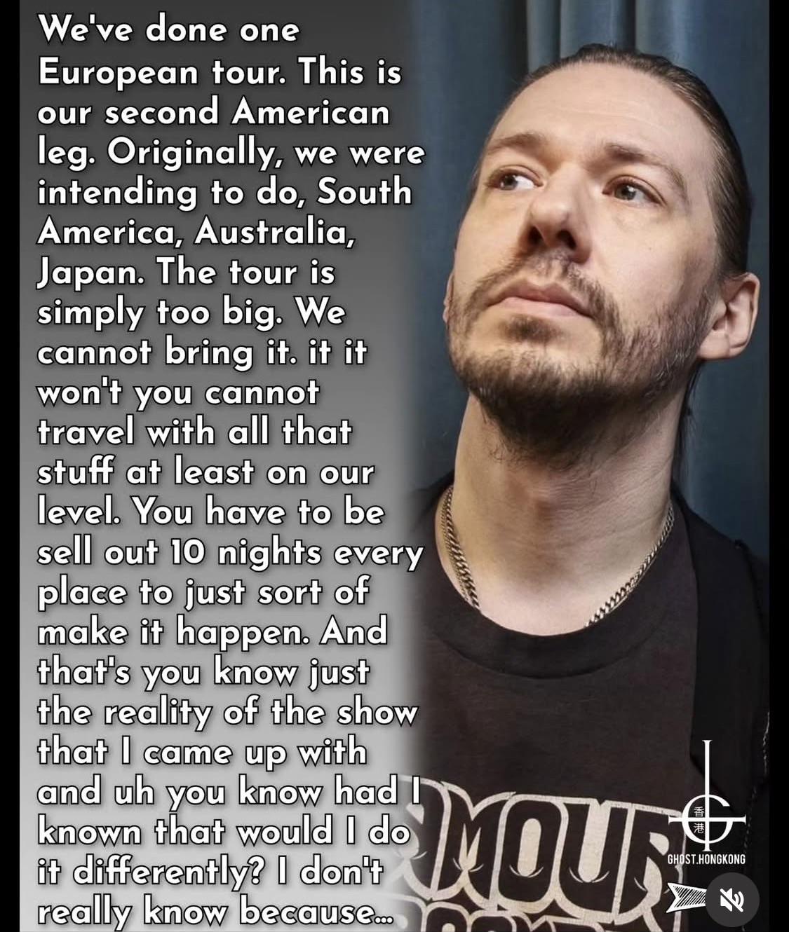I tu wracamy do sedna problemu - Ghost, powielając błędy popełnione dekady temu przez kapele pokroju Stones, The Who czy Judas Priest, położył zbyt duży nacisk na promocję w Stanach, zaniedbując inne ważne rynki - nie wykorzystano w pełni potencjału Europy (z tego co wiem w tym roku Tobias odmówił headlinerskiego slota na letnich festiwalach, a na stole leżały grube oferty) czy lojalnej i rosnącej na znaczeniu Ameryki Łacińskiej. W Stanach od 2022 odbyło się w sumie 5 pełnych tras (2022 z Volbeat i własna, ReImperatour w 2023 oraz 2 legi Skeletour) - to jednak, przy trudnościach branży koncertowej i stale rosnących cenach wejściówek, stworzyło spore przesycenie rynku i problemy z wyjściem poza fanbase.